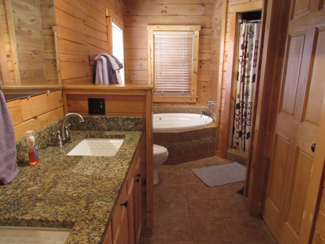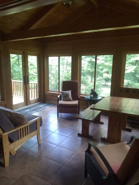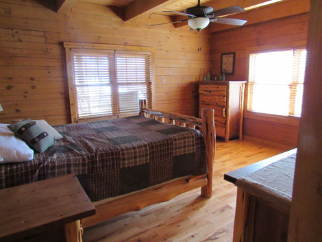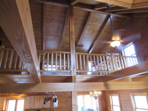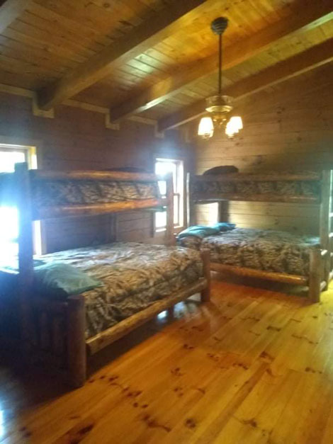 - Log bunk beds in Loft with queen bottom and twin top bunks